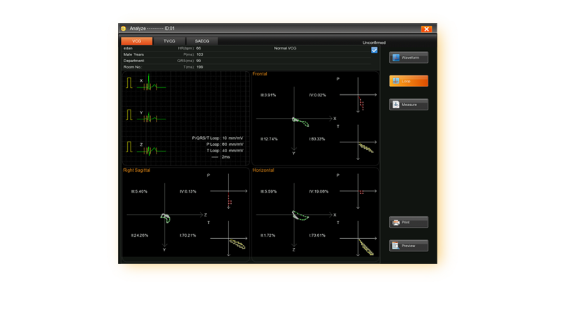 Уникальная функция просмотра сегмента ST, разработанная компанией Edan, наглядно представляет изменения сегмента ST,