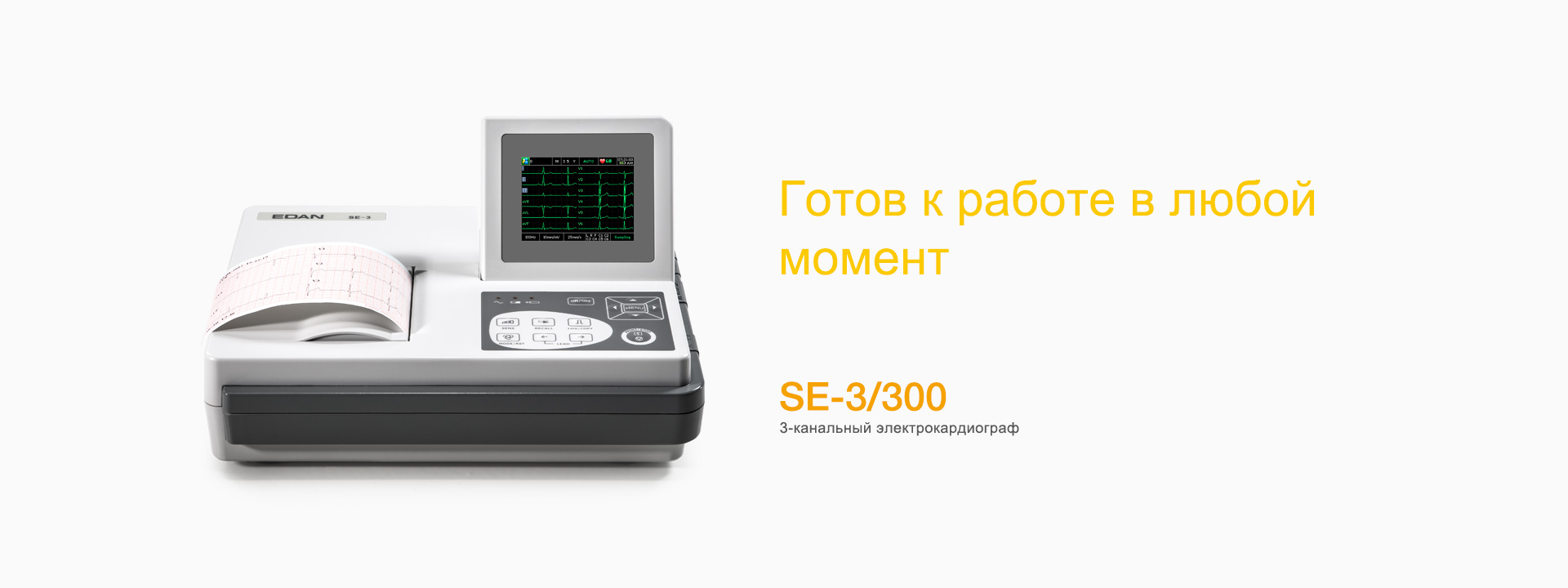 SE-3 и SE-300 — это компактные 3-канальные электрокардиографы, которые позволяют одновременно регистрировать и просматривать ЭКГ в 12 отведениях.