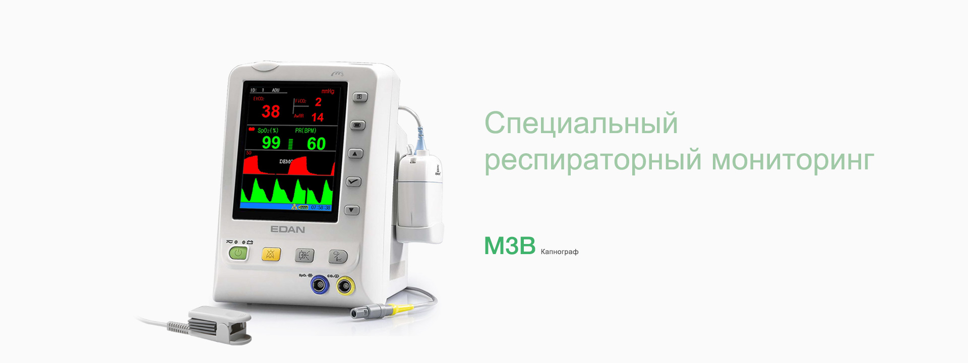 Вместе с мониторингом SpO2 и CO2 капнограф M3B предоставляет полные данные о дыхательной системе.